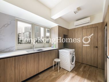 Maid's room with its own washroom is at back of the kitchen and fitted with washer and dryer.
