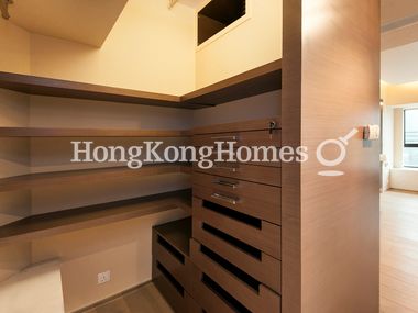 Master bedrom with plenty of room for a king-size bed comes with wall-mounted flat-screen TV and plenty of wall-integrated storage space, some of it hidden and big enough to accommodate a safe. A desk made of white Italian style marbled stone plus chair make the perfect study area. The secluded dressing area offers many open wardrobe features and even has lockable drawers for your valuables.