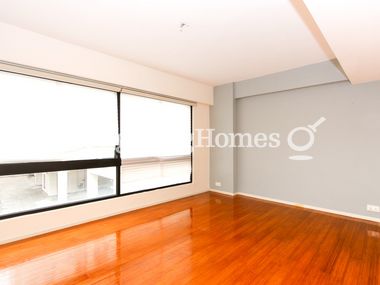 • Bright and breezy apartment with warm teak wood flooring, off-white painted walls with ceiling and huge windows.