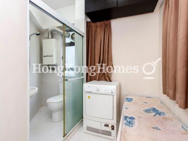 • Maid's room with bathroom comes with single bed, overhead cabinet and dryer.