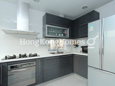 • Sliding glass doors divide the fully fitted kitchen from the living and dining room to create an open feel. It is equipped with built-in gas hob, exhaust hood, microwave and oven, and large fridge.