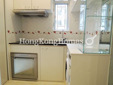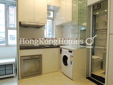 • Stove, oven, fridge and washer are installed in the kitchen.