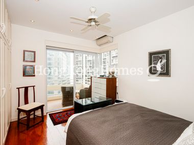 Warm wooden flooring, painted walls and ceilings, ceiling fans, ceiling lights, split-type air cons and window treatments are installed throughout the premises.