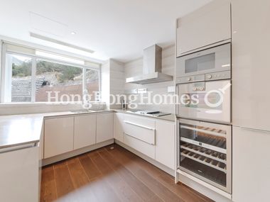 Fitted kitchen comes with built-in gas hob, exhaust hood, microwave, oven and fridge. There are lots of cabinets and service top.