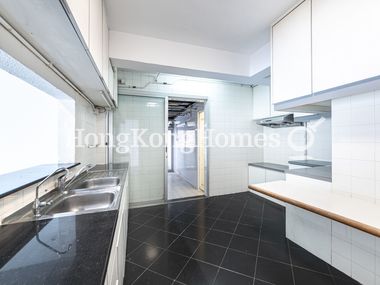 The kitchen is equipped with essential appliances and built-in cabinets.