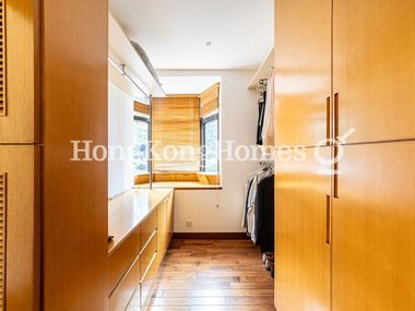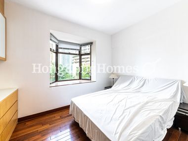 The master bedroom with good layout and walk-in closet, is flooded with sunlight from the bay window.