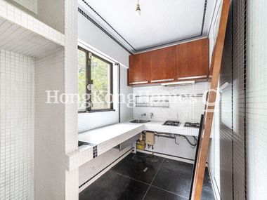 Basic kitchen comes with gas stove and built-in cabinets.