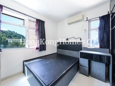 This unit offers open views of the green hillside and the surrounding residential buildings.