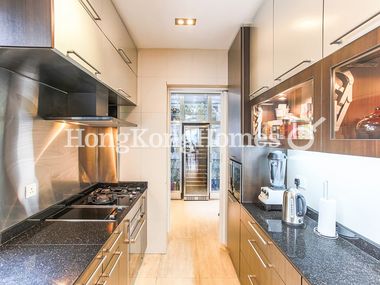 Fully fitted kitchen features plenty of cabinets and built-in appliances such as gas hob, exhaust hood, oven, fridge, washer and dryer.