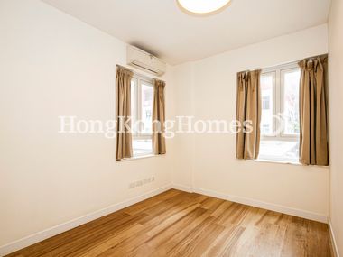 Modern flooring, lighting, curtains and white painted walls throughout.