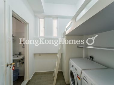 • Maid's room with its washroom is at the back of the kitchen is fitted with a combination of bed and storage, with the washer and dryer installed underneath.