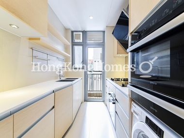 Fully equipped kitchen includes built-in gas hob, western oven, steamer oven and washer/dryer.