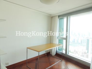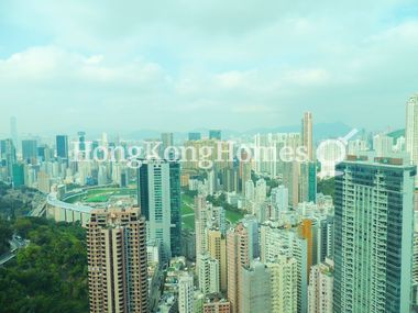 Duplex apartment with the living and dining room on the lower floor boasting double ceiling height and floor-to-ceiling windows overlooking Happy Valley, Central and Victoria Harbour.